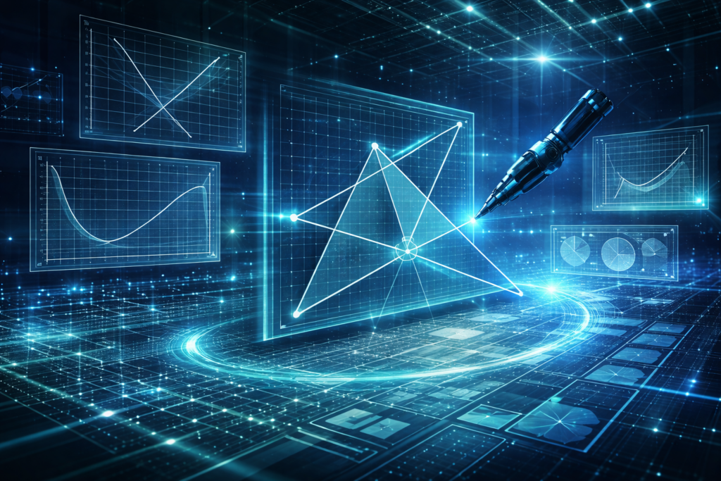 外枠を構成するのは、ラボの象徴であったフラスコを、より堅牢で論理的な「六角形(ヘキサゴン)」へと進化させた形状だ。自然界で最も安定したこの構造は、当サイトが全国の膨大な入試データを格納する「巨大なデータベース」であることを意味する。単なる一研究所の枠を超え、全国の入試トレンドを網羅する「解析局」としての意志の表れである。